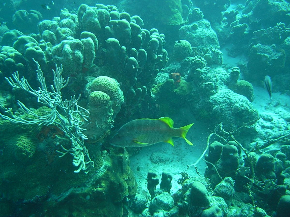 A boat dive in the morning. We were supposed to visit the Hilma Hooker, but our boat encountered an engine challenge, so we dived “Something Special” instead. A lovely reef, just south of Kralendijk. My computer logged 81 feet max depth and a 47-minute total dive on EAN32. Water temp was 81, with no noticeable thermocline.
