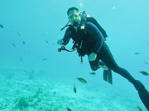 A morning reef dive at Buddy Reef (56 minutes, 35 feet) proved pleasant. This time, Jen brought her camera. We went again in the afternoon, but it was my turn to suffer a tank leak, so I aborted and Jen and Dave went together.