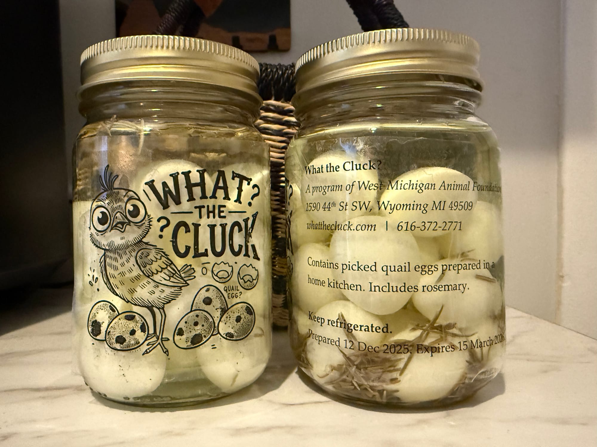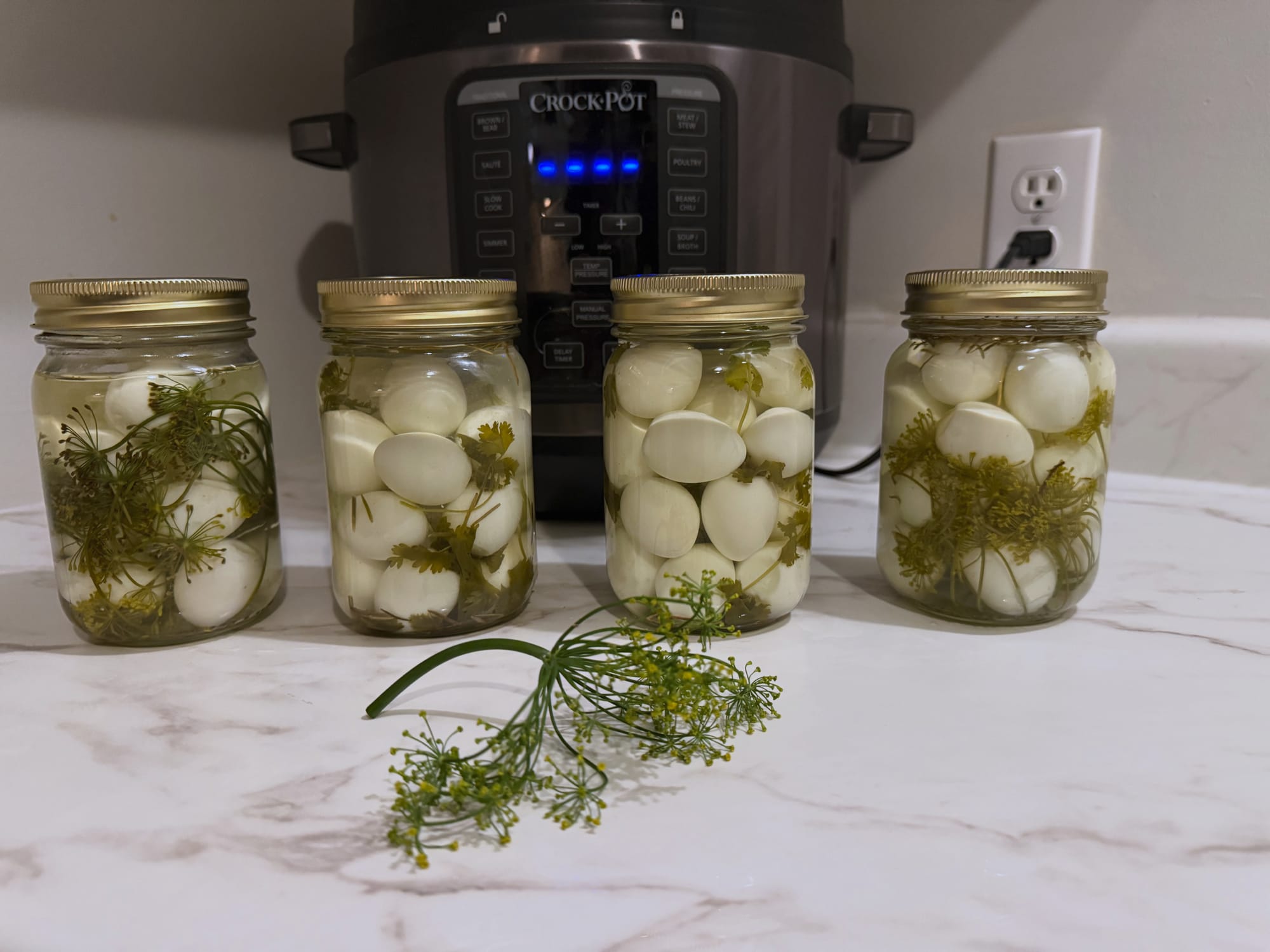 - Emma, Tara, and Kiko came over to pickle some quail eggs one morning.